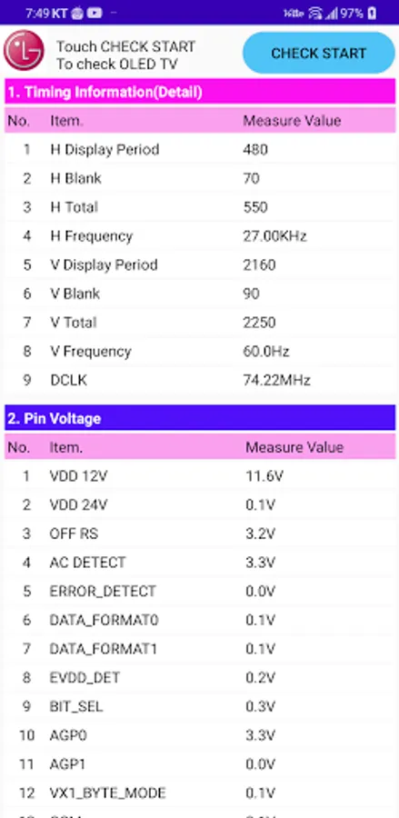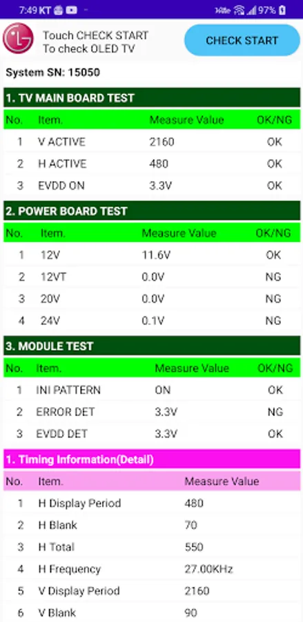 - Measure 12V, 20V, 24V,12VT and display each voltage and display OK or NG