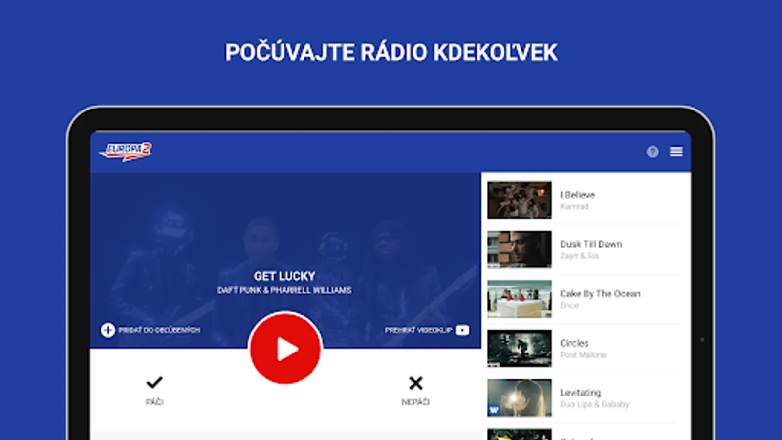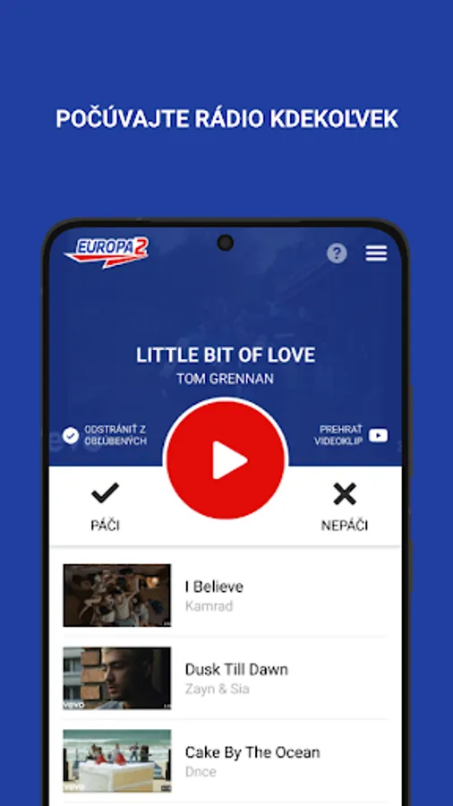 You can add the song we are currently playing to your favorites and rate it. This will affect the broadcasting of Radio Europa 2 (no personal data of yours will be collected). You can rate each song every 2 weeks.
