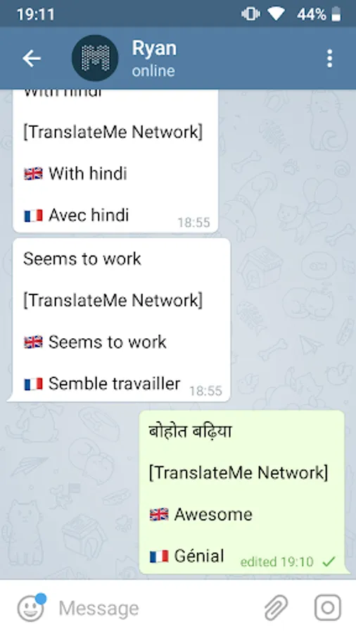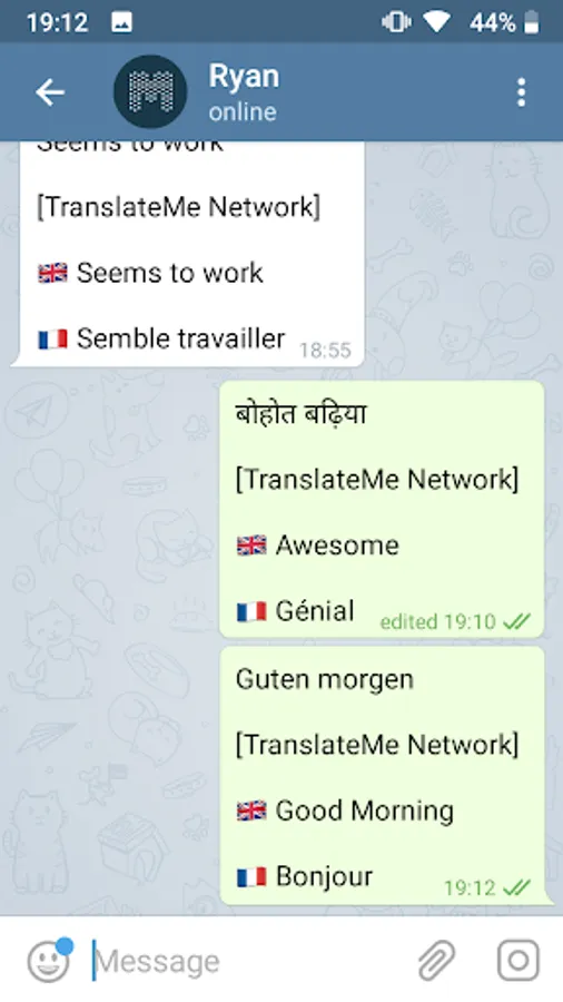 TranslateMe Telegram Messenger has the same structure as Official Telegram, but the difference is translation. Now you can communicate with others in your different languages. Translate telegram groups and private chats. You write in your native language and the screen appears with translation, this can help you learn a language as you chat with friends and family. We have also added the powerful ChatGPT to help make your chats even more interesting or just have ChatGPT available in your favourite chat application.