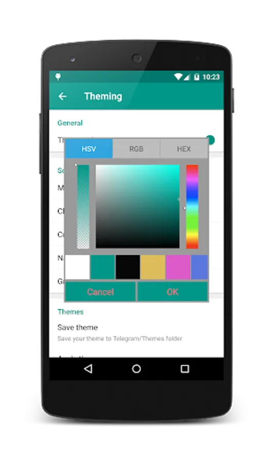 Telegram themes app: https://play.google.com/store/apps/details?id=es.rafalense.telegram.themes