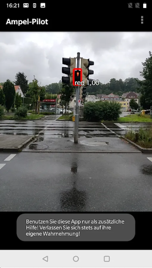 Recognition starts immediately after opening the app. Point the camera in the direction of the next pedestrian light and you will be informed of the current light phase.