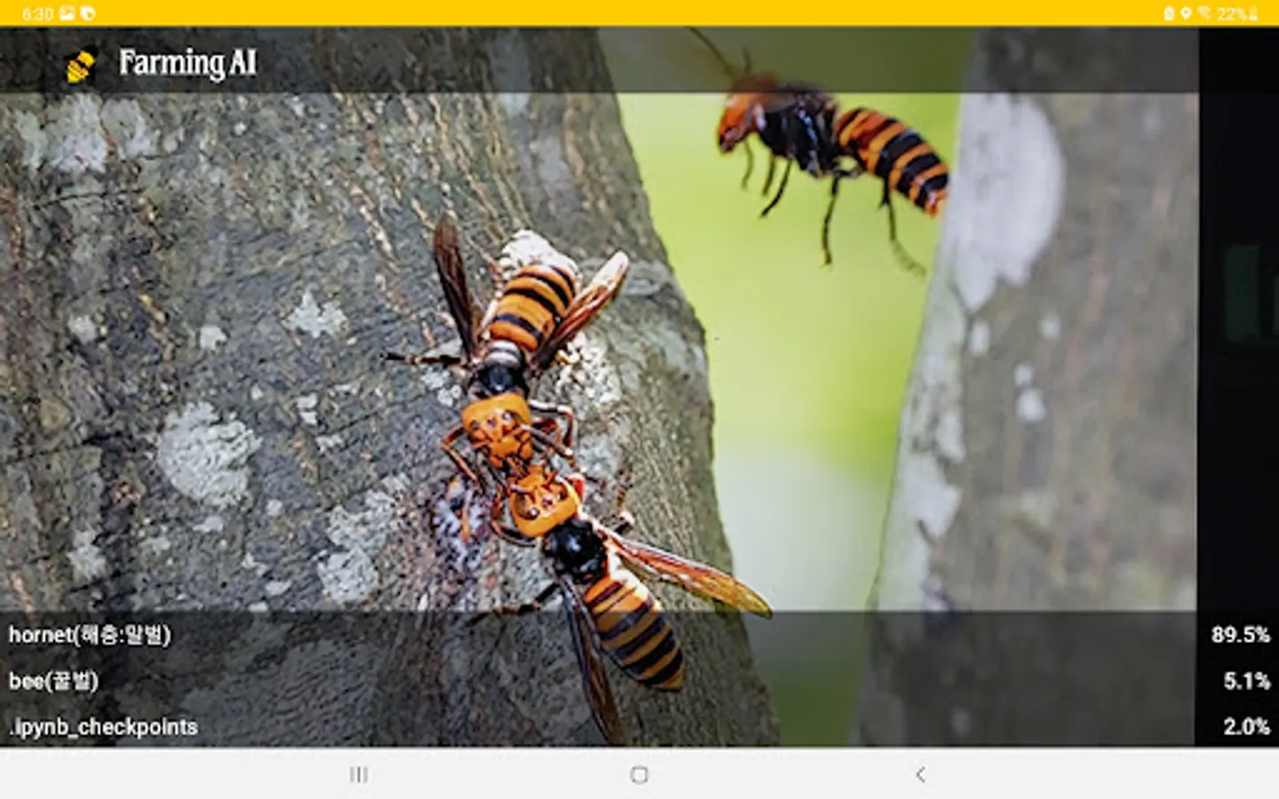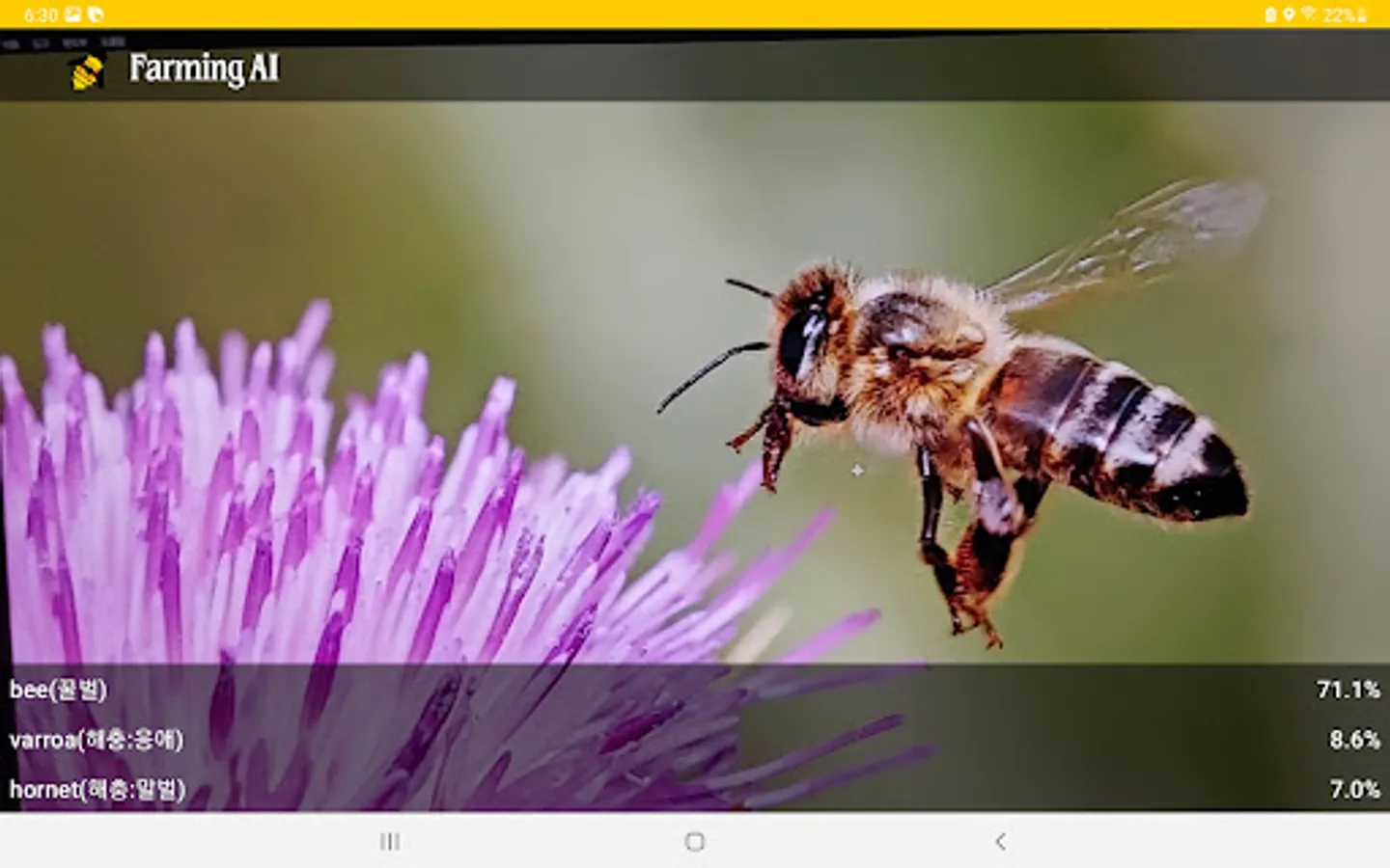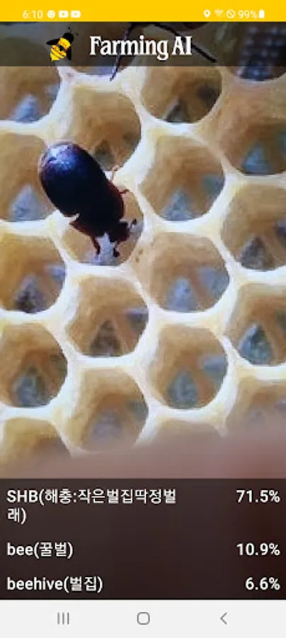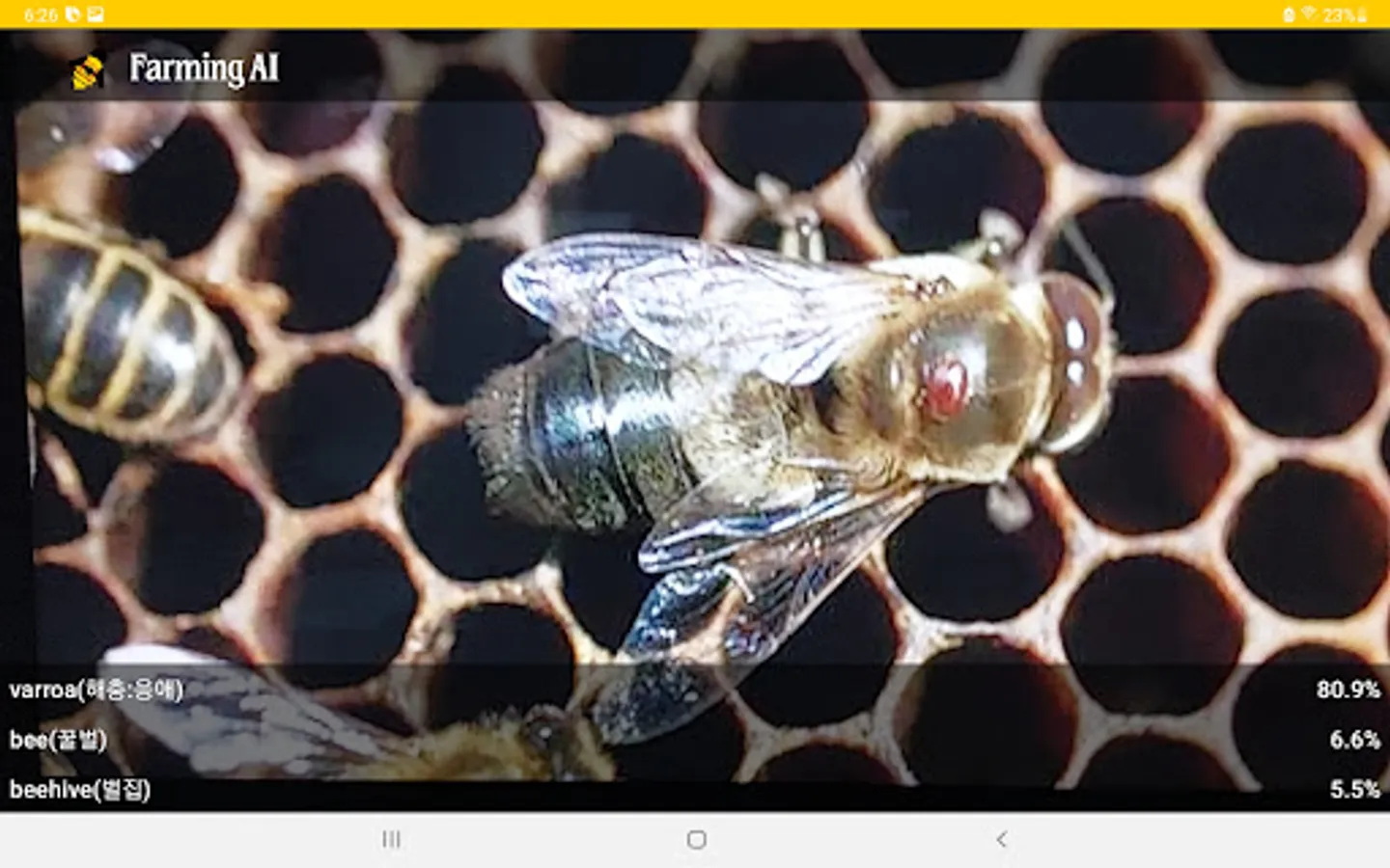 The beekeeping pest diagnosis and beekeeping equipment recognition app uses real-time camera information processing and deep learning technology to diagnose pests and pests. For example, it is possible to diagnose 'varroa mite', 'small beehive beetle (SHB)', and 'wap', which are beekeeping pests. It can also recognize various beekeeping equipment. Click and open the app while the camera works in real time. If you get as close as possible, you will know the name of the pest. Accuracy may decrease depending on sunlight or shade. As the camera continues to operate, please turn off the app when not in use. thank you.