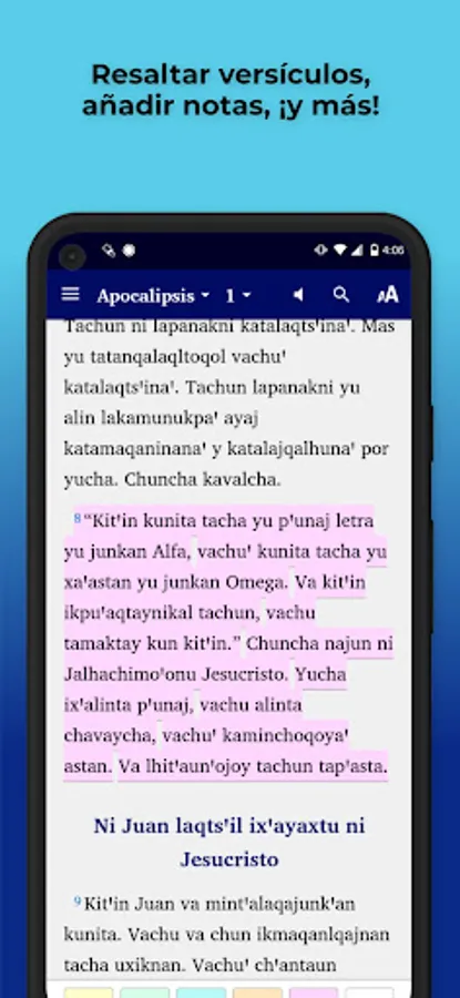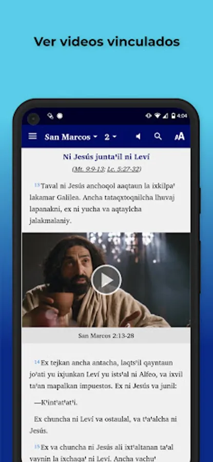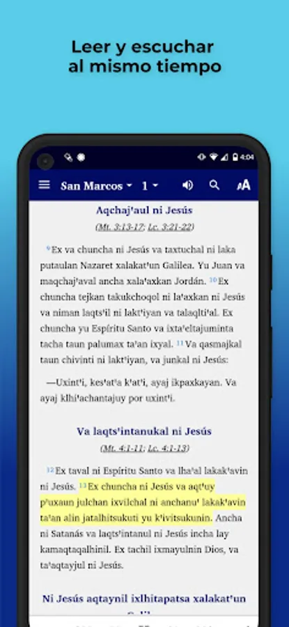 This app comes with audio and automatic text highlighting as the audio is played for books where audio is available. The Gospel of Mark audio is included in the intial installation. The audio for the other books will be downloaded from the web the first time the chapter is played. Internet provider data use charges may apply for downloading audio or watching linked videos.