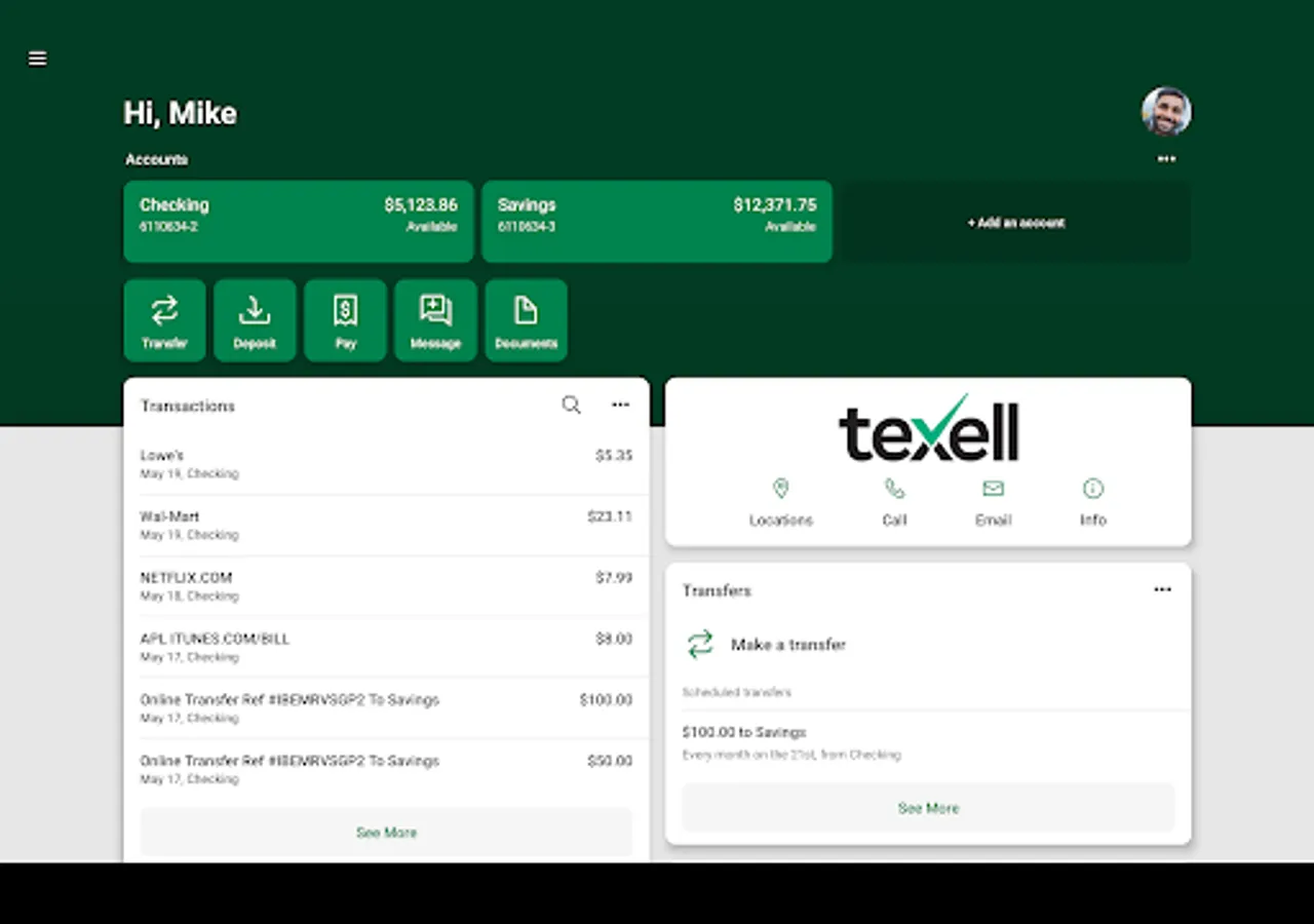 Texell’s mobile apps is fast, secure, and makes life easier by empowering you with the tools you need to manage your finances and redeem your BONUS Rewards.