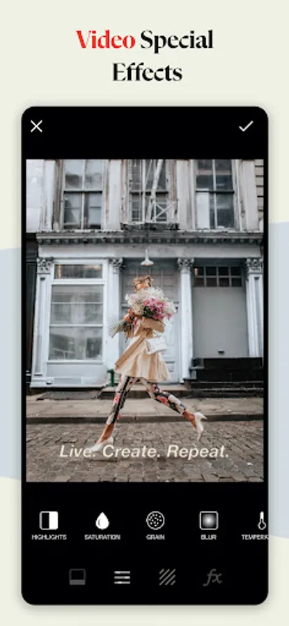 Tweak your edits with 14 professional tools, including HSL. Popular favorites include Blur and Grain for an effortless film look.