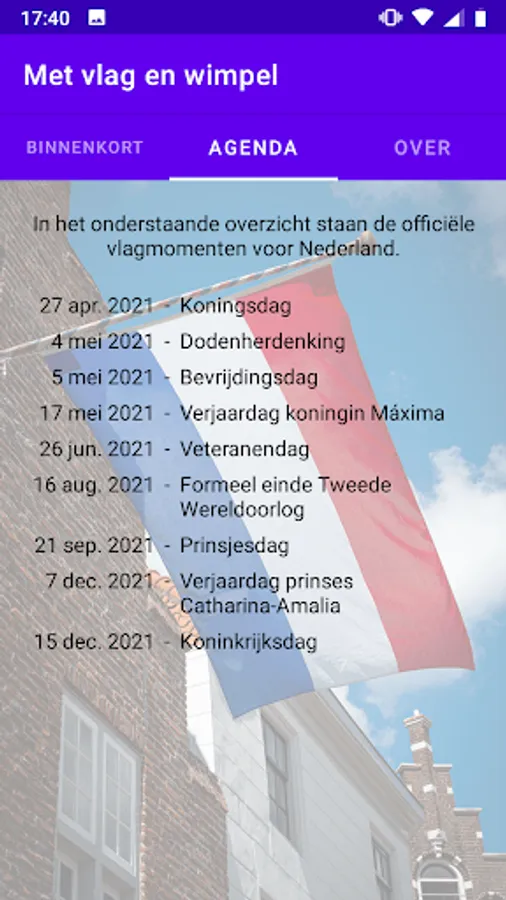 The Dutch flag in the house, probably with a pennant, but when can you actually hang it outside?