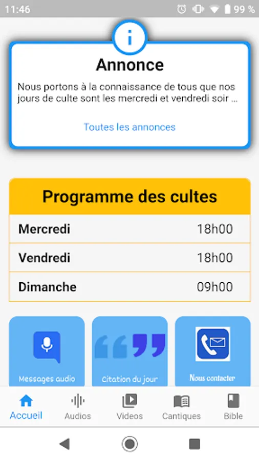It is an application for (re)transmission of preaching and sermons at the Tabernacle of the Message temple. It also provides access to Branham.org resources.