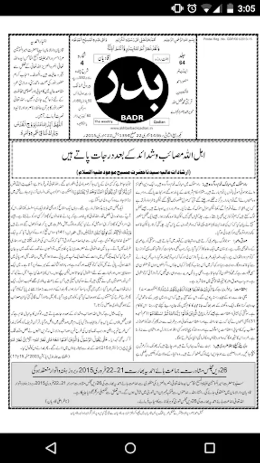 The app loads the latest weekly edition available on the web www.akhbarbadrqadian.in and you can also download and view old editions available online.