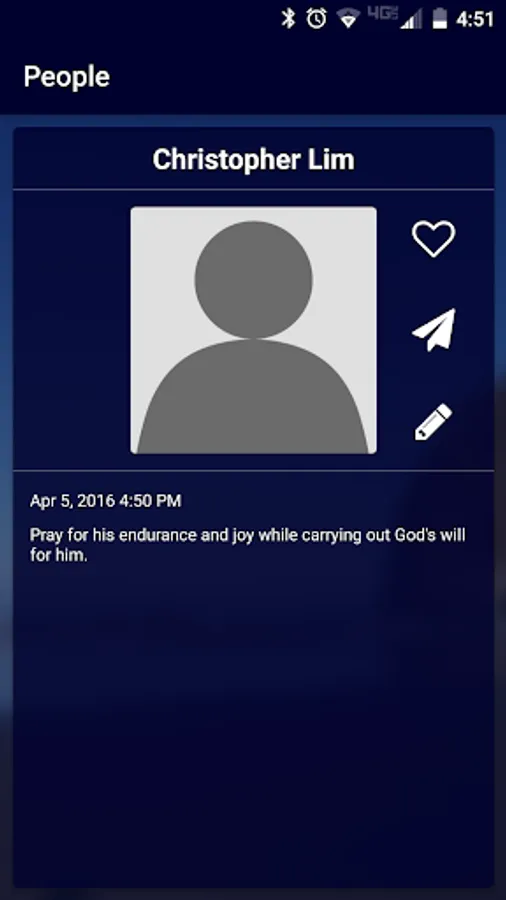 Connect personally and ask friends for prayer requests. Send an email or text message to them easily from the app. Encourage others by letting them know you are praying for them.