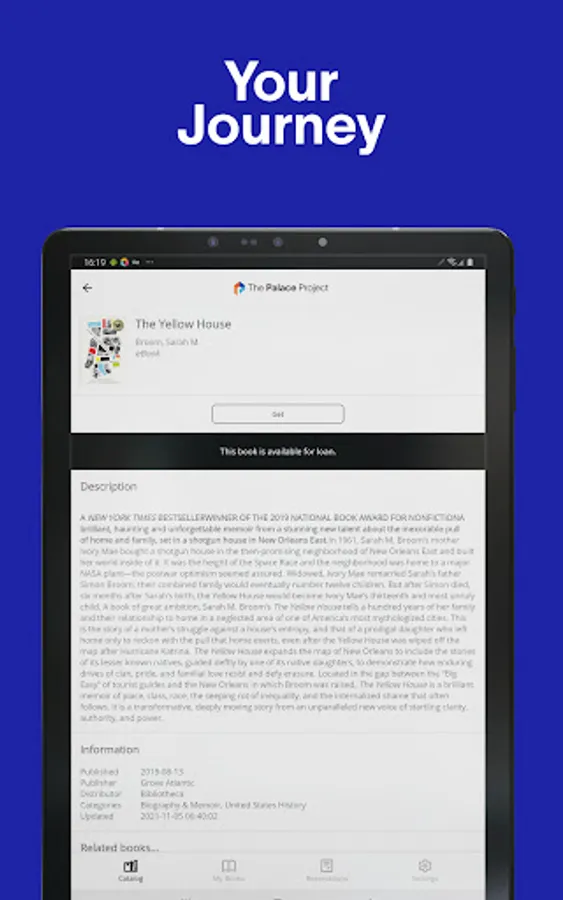 The Palace app is built and maintained by The Palace Project, a not-for-profit division of LYRASIS working in partnership with Digital Public Library of America with funding from the John S. and James L. Knight Foundation. For more, visit https://thepalaceproject.org.