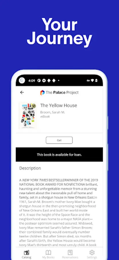Palace is a free, easy-to-use e-reader app that lets you find, check out, and read or listen to books from your local library.