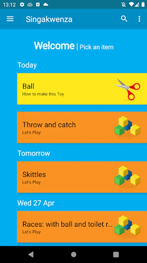 Children learn best in a warm, engaged and caring relationship with a significant adult, so Play@Home with Singakwenza is designed to help the adult feel competent in providing simple, fun, hands-on activities that their child will enjoy. Daily interaction provides an environment where the child is actively involved while enjoying special time with their parent or caregiver.