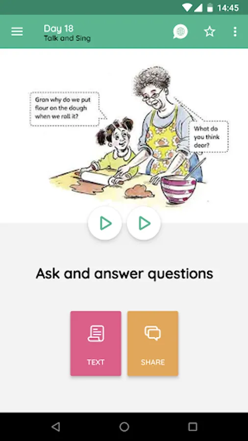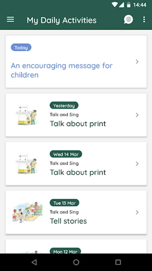 From Monday to Thursday you will receive messages which give examples of activities you can do with your children, and information about why these activities are important for learning and language development.