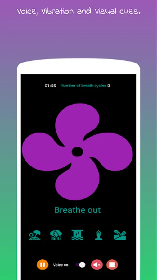 1) Our Voice Assist feature - You can take your eyes off the screen, the app will tell you when exactly to breathe in and out.