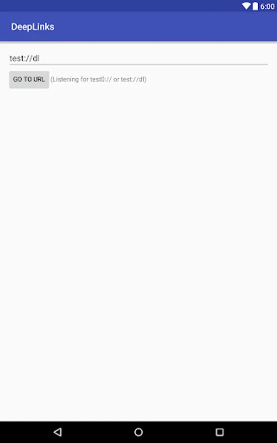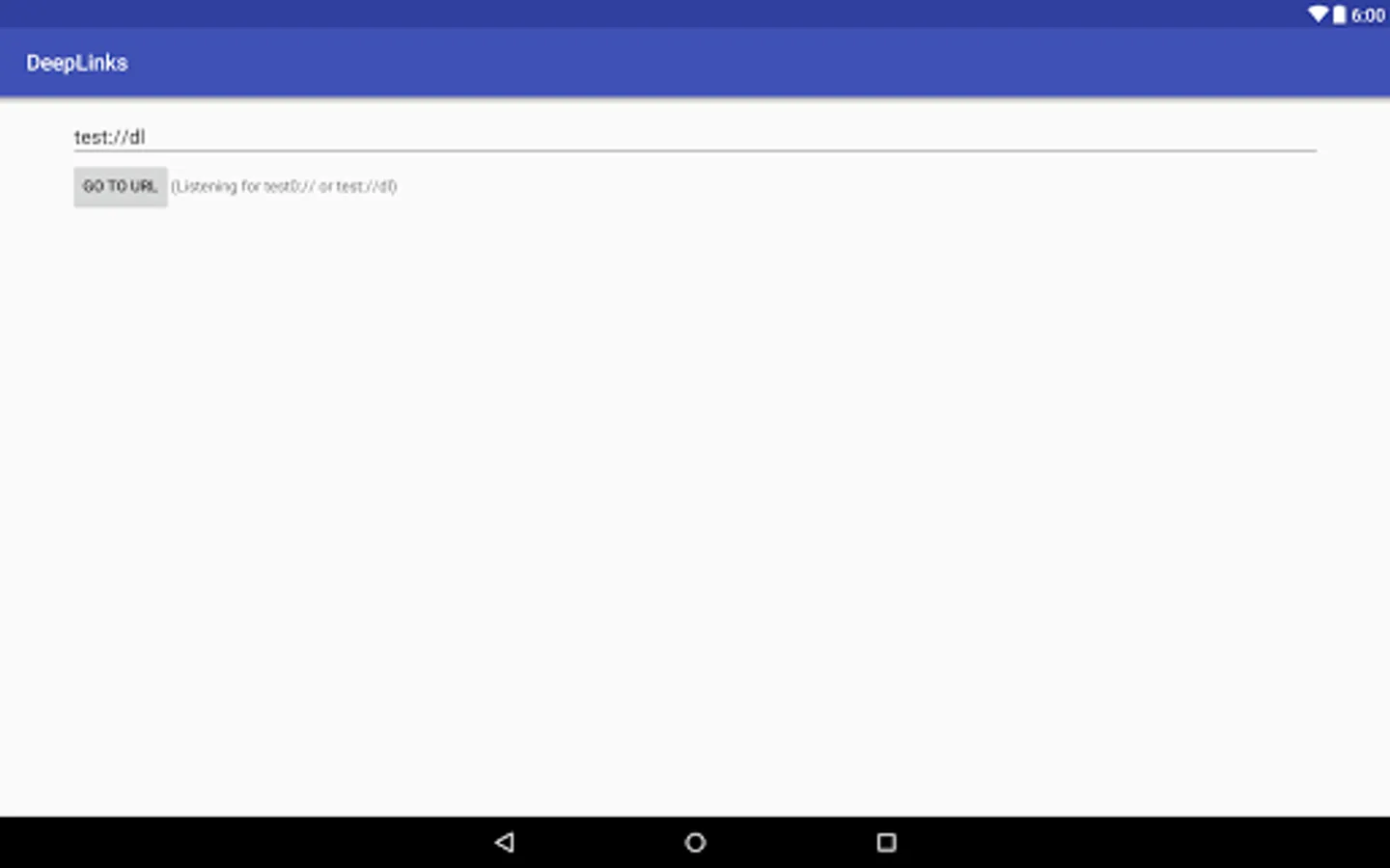 This app lets you activate deep links in apps by manually specifying the URI to activate. It will also accept receiving deep links as well