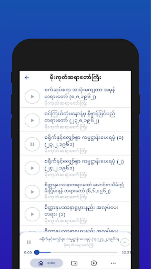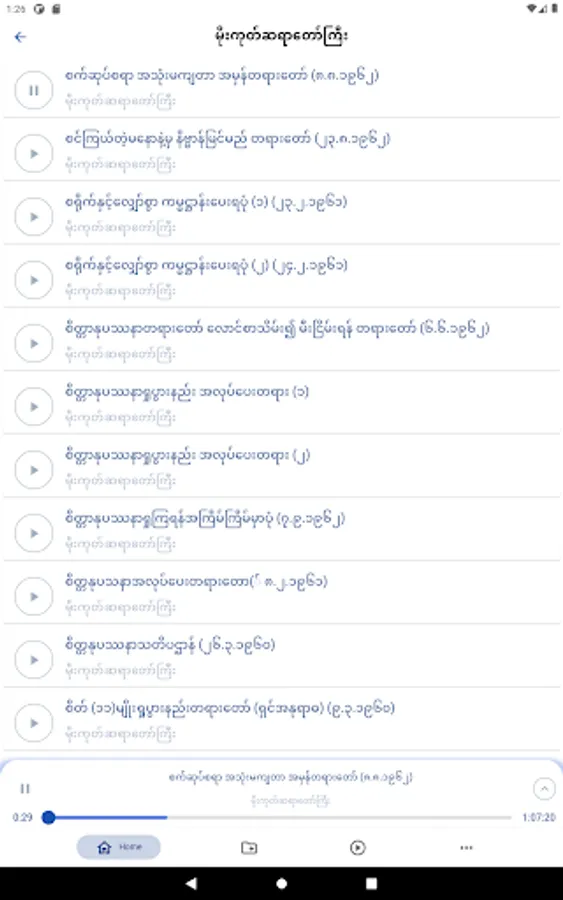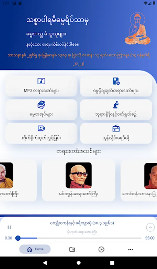 The Thitsarparami mobile app is a religious application designed specifically for Myanmar users. This app serves as a convenient tool for Myanmar people to listen to Dharma mp3s anywhere and anytime, as long as an internet connection is available.