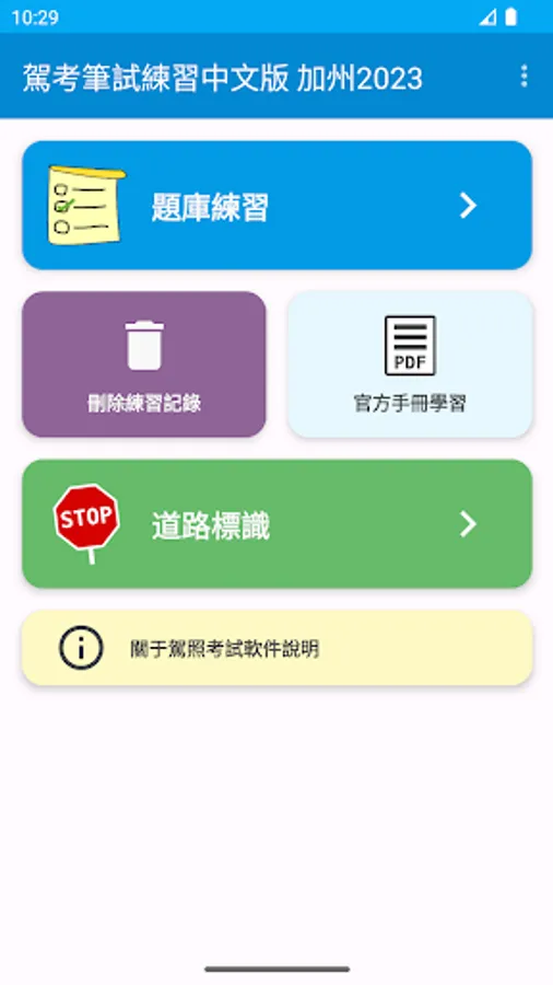 Welcome to "Driver's License Test Written Test Practice Chinese Version California 2023"! This APP provides more than 300 questions for the driver's license test takers to study and practice, helping you to prepare for the driver's license written test more easily and get the license efficiently and quickly. Our APP is not just a question bank, but a comprehensive learning tool, which automatically records your answer status and provides you with a more personalized learning experience. Whether you are a novice driver or an experienced driver who wants to review knowledge, our APP can meet your learning needs. Download our APP now, meet the test challenge, and become a qualified driver!
