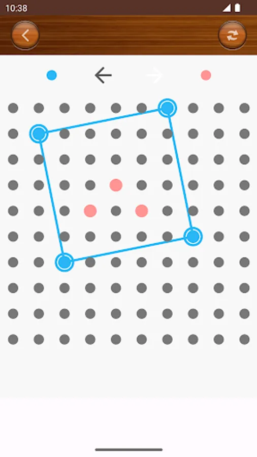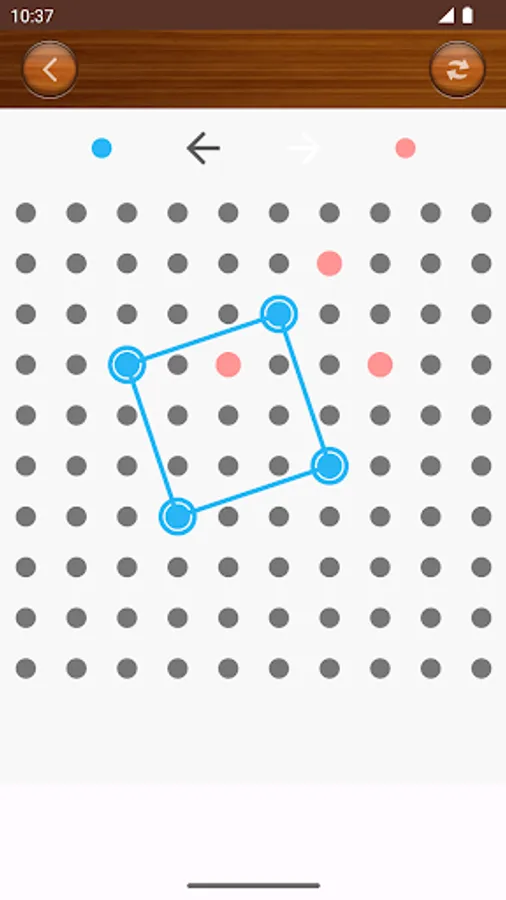 "Find Square" is a puzzle game designed to train your plane geometry thinking skills. It offers two game modes: Player vs. Player and Player vs. AI. In this game, you compete with an opponent on a grid chessboard, aiming to quickly form a square composed of 4 points by selecting the placement of your moves.