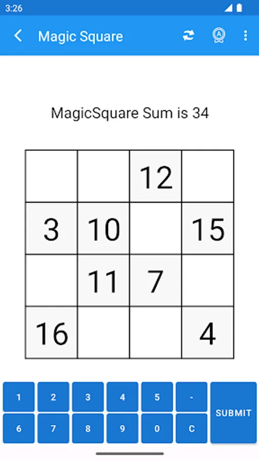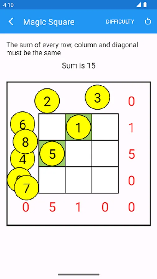 The game offers multiple difficulty levels for you to choose from. As the order increases, the complexity of the magic square also increases.