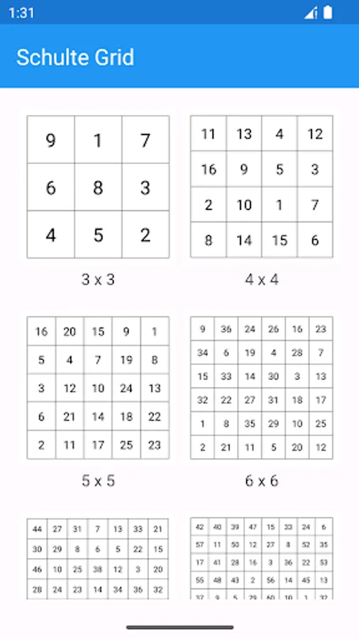 Difficulty Selection: Schulte Grid offers multiple difficulty levels tailored to different age groups. Users can choose the appropriate difficulty level according to their abilities and goals, making the training more challenging.