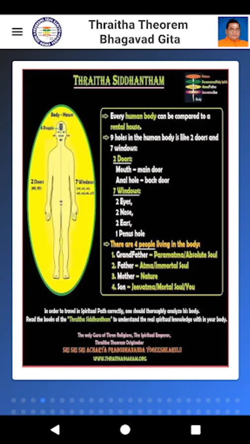 This Thraitha Siddhantha Bhagavad Geetha reveals us the great Divine Theorem called “Thraitha Theorem”. By reading this “Thraitha Siddhantha Bhagavad Geetha”, one can gain the real notion of “Bhagavan Sri Krishna” and will find the path to attain the Liberation.