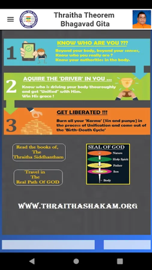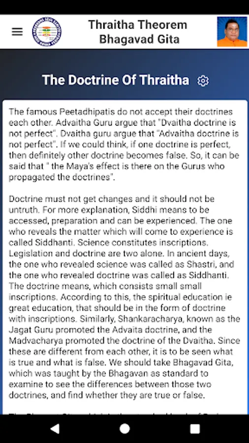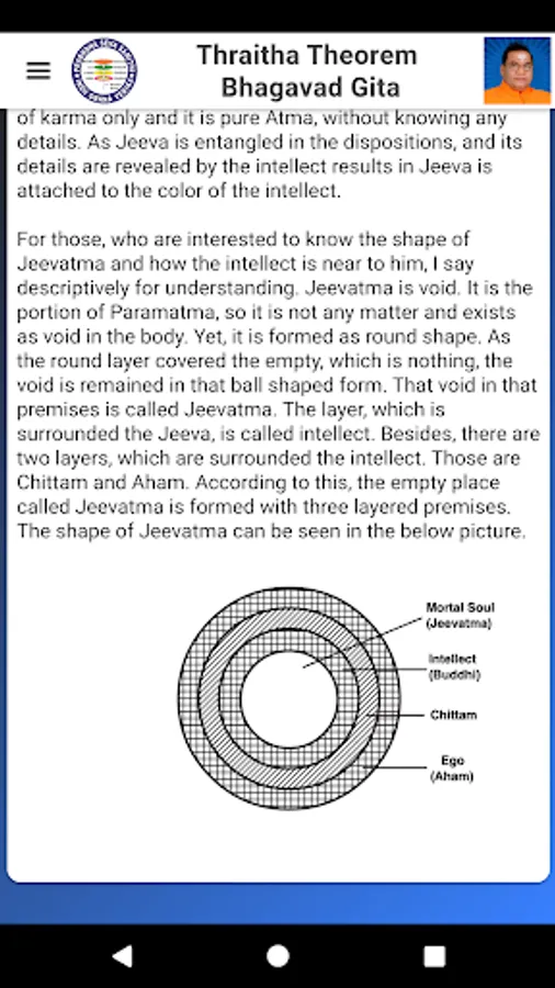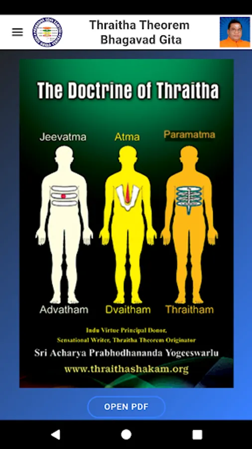 “Thraitha Theorem” means the theorem of three souls, they are 1. Jeevatma [Mortal soul], 2. Atma [Immortal Soul], 3. Paramatma [Absolute Soul]. Bhagavad Geetha exists according to “Thraitham” and “Thraitham” exists according to Bhagavad Geetha. These two are inseparable pair.