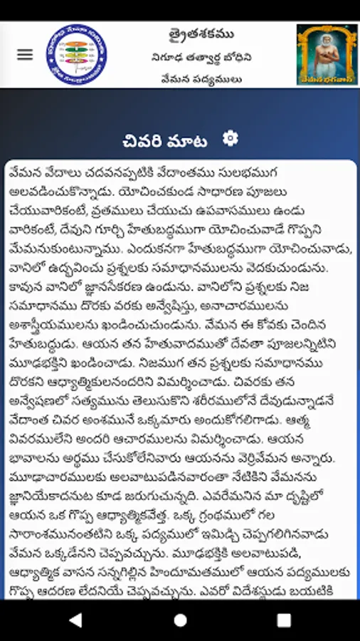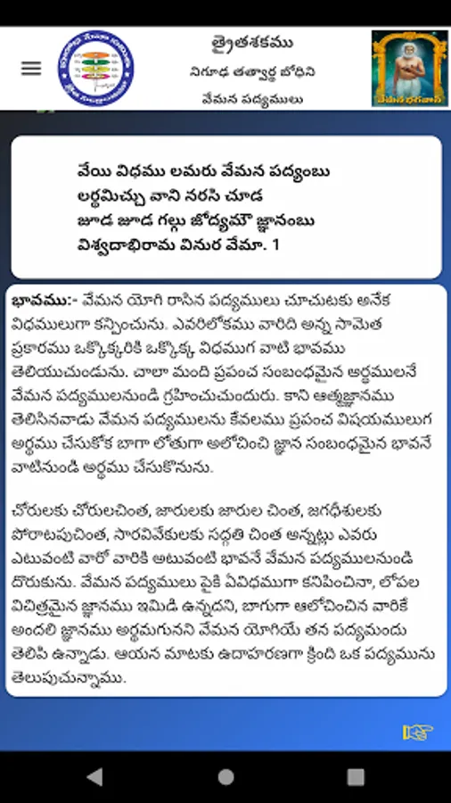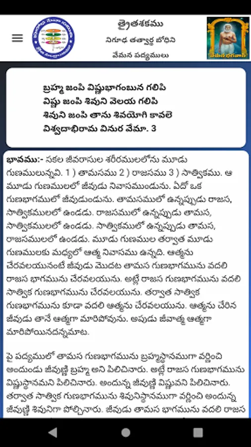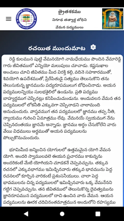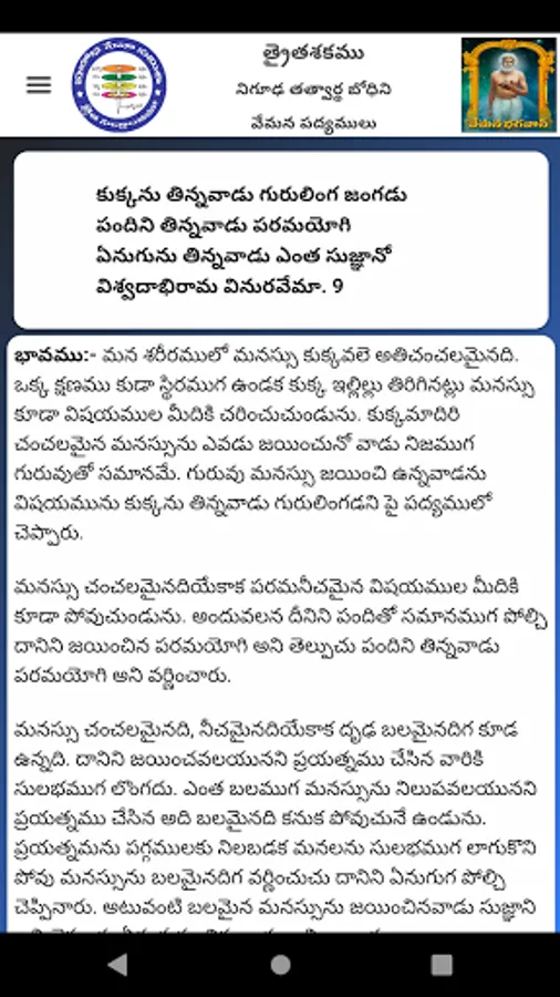 Vemana Yogi is the best yogi born on earth. It is safe to say that he was not promoted as the master of all, and that he was not seen as the greatest yogi of all. Those who embody the greater part in lesser writing are more appreciative than those who compose lesser sense in larger works. It is safe to say that Vemana was the only one who embodied very large sentiments in short verses. Vemana is the one who hid in the verses the wisdom of the divinity he knew in his life. The mystery of his verses will not be revealed as long as he reads them carefully. Only when he thinks will he understand the verse.