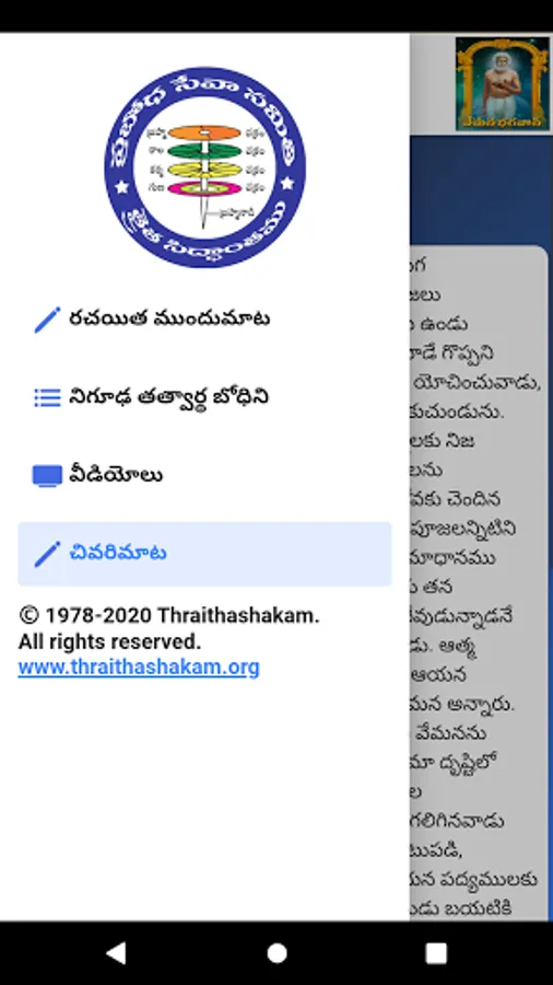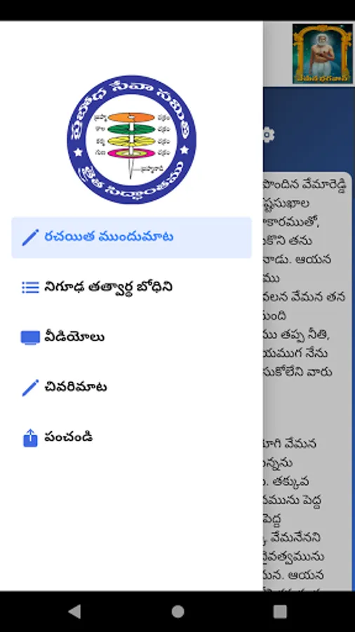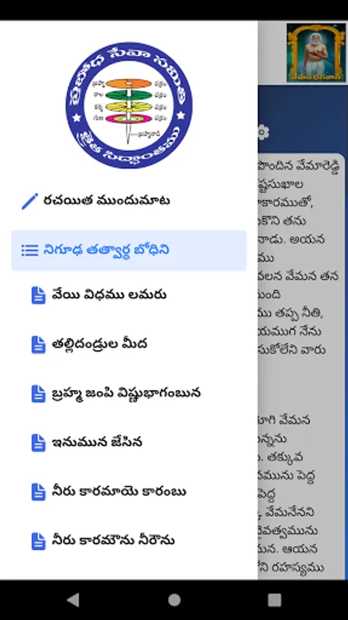 Born into the Reddy clan and named Vemanayogi, Vemareddy saw many twists and turns in his life. With aversion to life on the brink of hardship, with the help of Vadine, with the teachings of Shivayogi, he was inspired to know the truth and taught the knowledge he had acquired in verse. All his poems are in simple style. Each verse appears to be uttered externally. Thus many would think that Vemana said much of the worldliness in his poems. In fact in his verses there is nothing about righteousness and justice except knowledge. Vemanaye Swayamuga said that everything I said was wisdom. Those who do not understand wisdom compare his verses with a thousand different meanings.