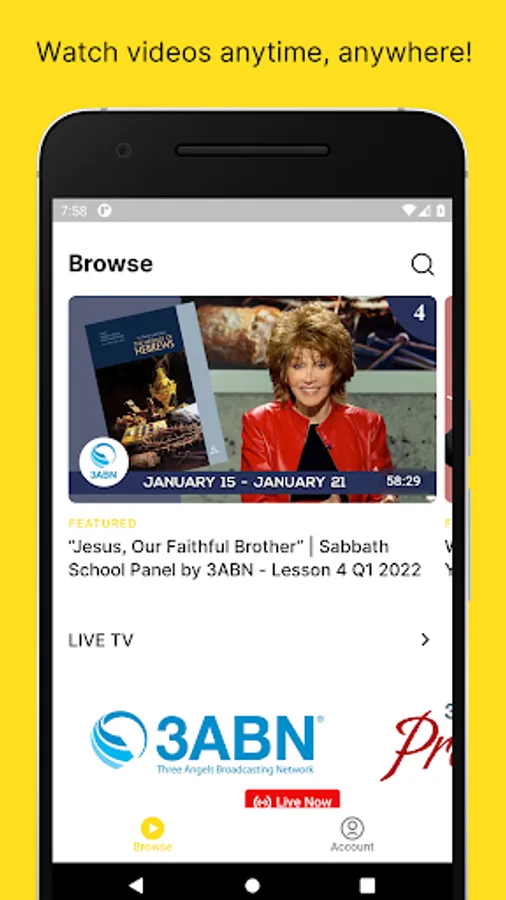 3ABN is your mobile companion to the website. It allows you to access the content included in your subscription.