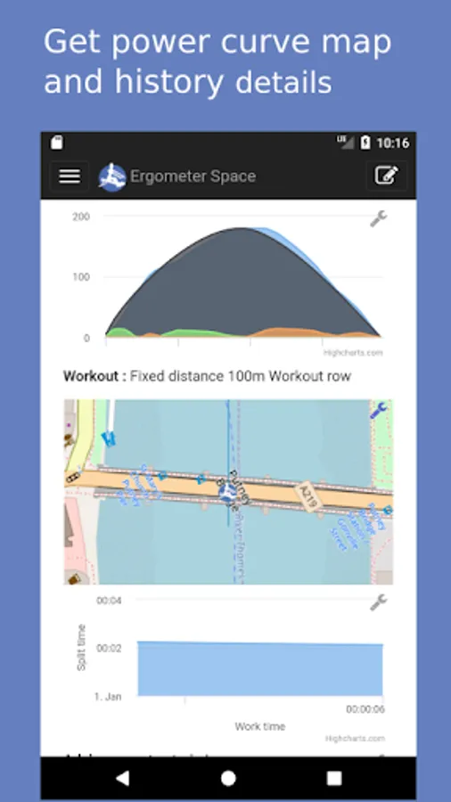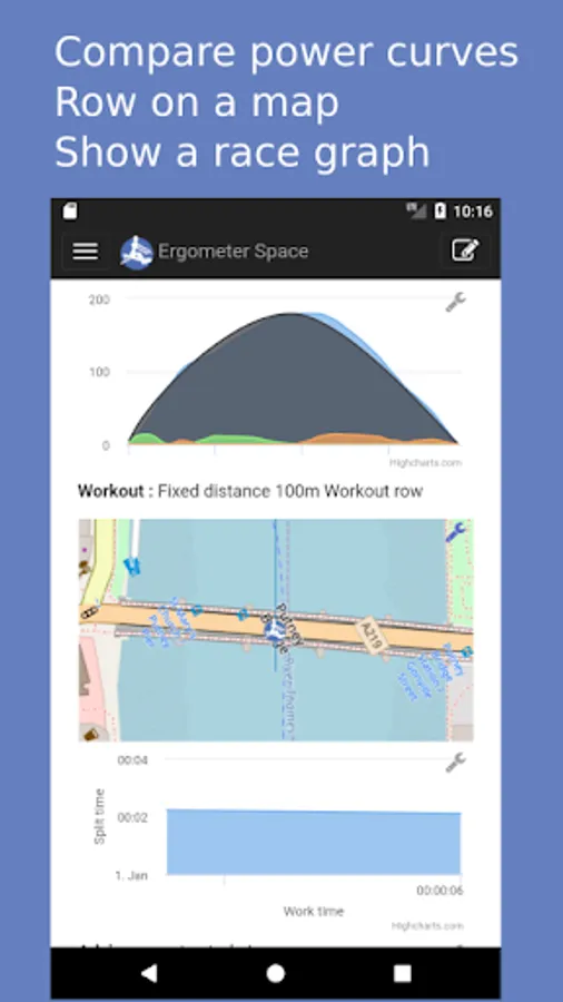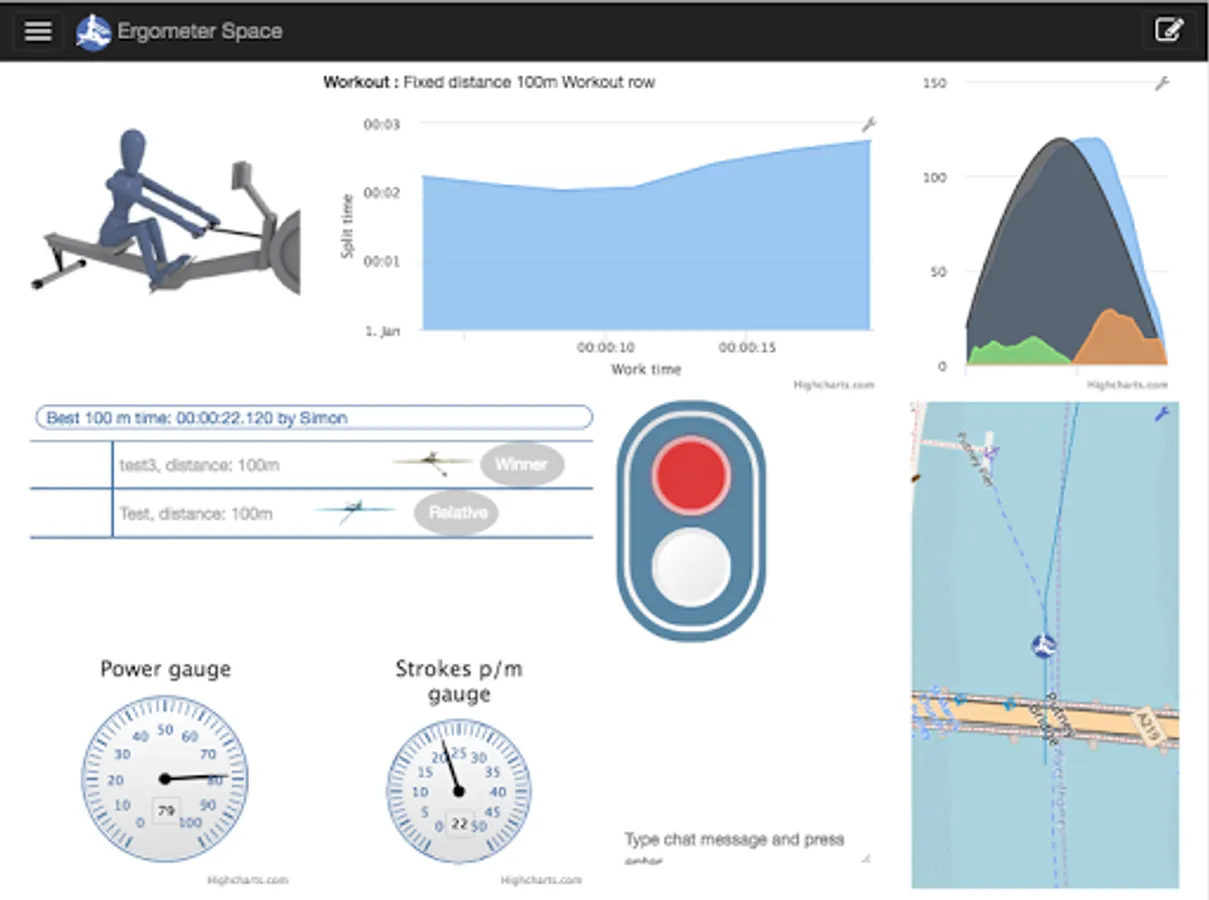 - You can load your own map with a predefined course and show your rowing position on the map.