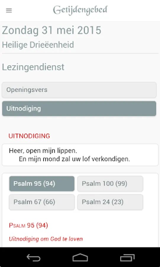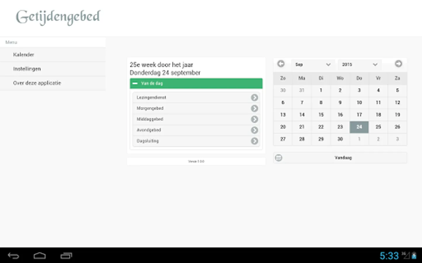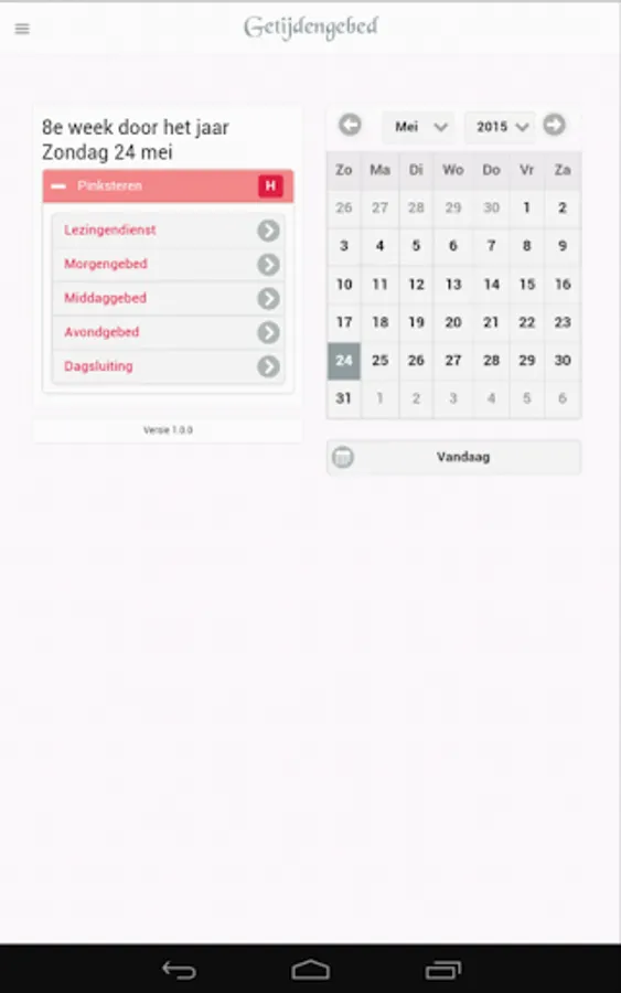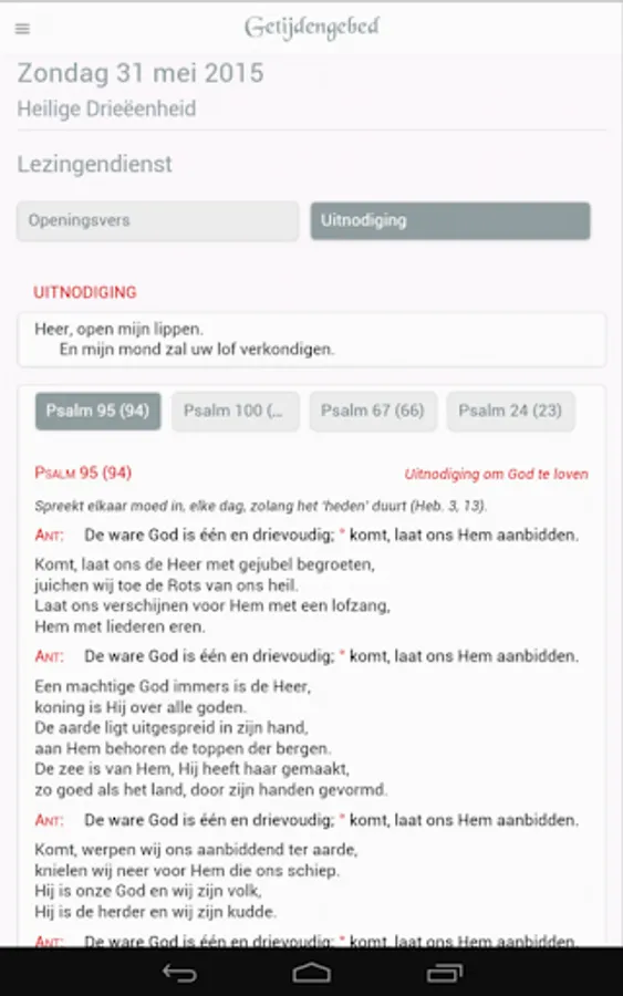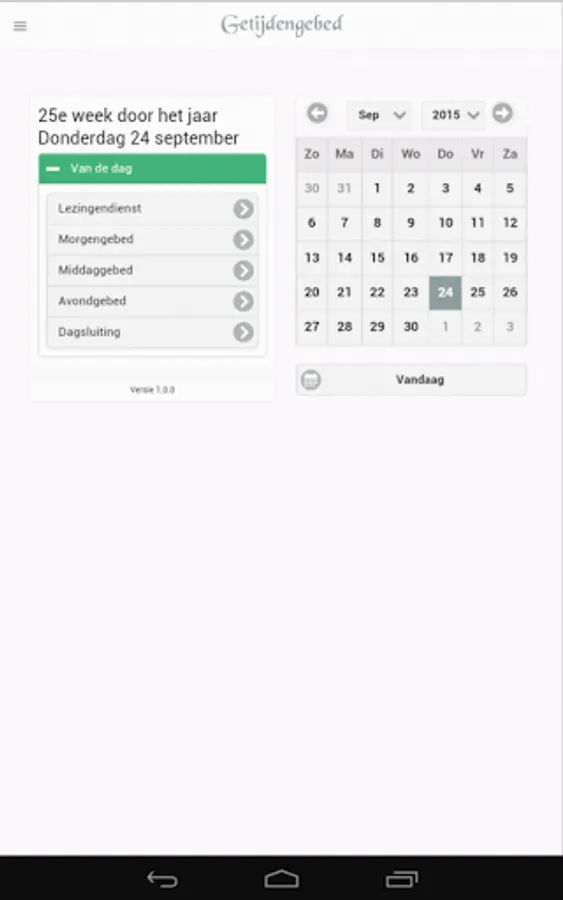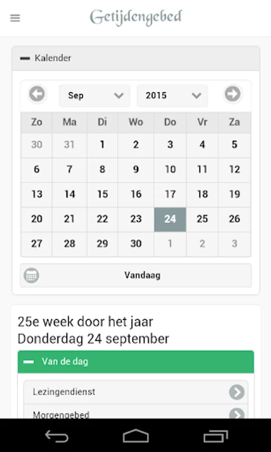 The Liturgy is the prayer of the Roman Catholic Church that is prayed at different times of the day by clergy, religious and many faithful. The Liturgy app contains the official Liturgy in Dutch including the lyrics for the Netherlands and Flanders.