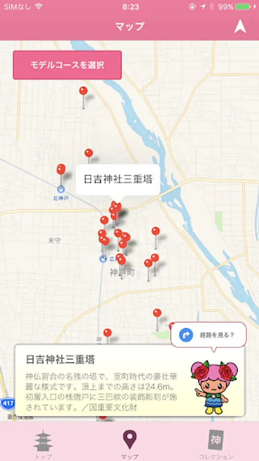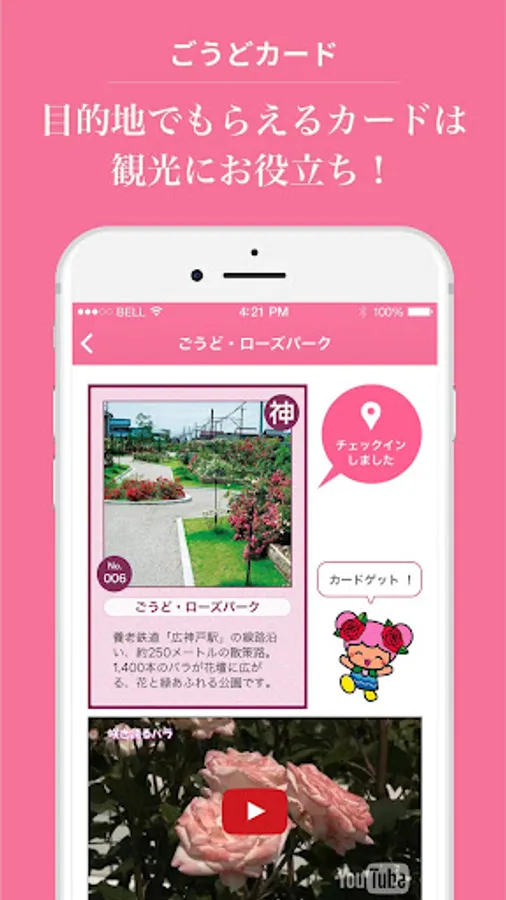 岐阜県神戸町の寺社や文化財、公園や公共施設などの観光スポットを巡り、チェックインすると写真や詳しい説明の書かれた「コレクションカード」を入手することができる観光アプリです。