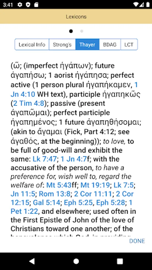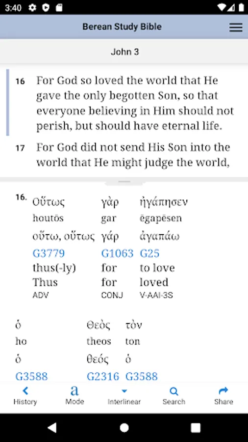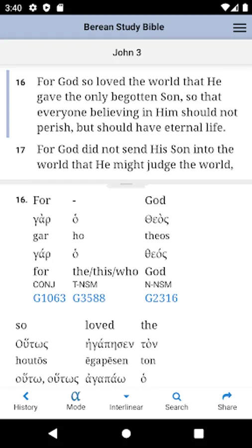 The eRhema Bible App enables users to explore the Bible in its original languages. Its features include