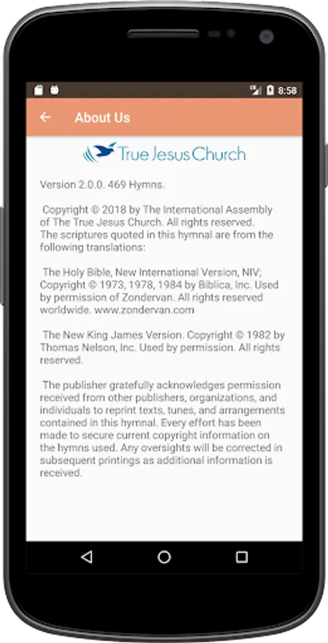The TJC-IA App can serve as a tool to cultivate your spirituality by singing praises to God, listening to and studying the Word of God. Also it is able to store your favorite hymns and audio/video sermons and testimonies for listening later.