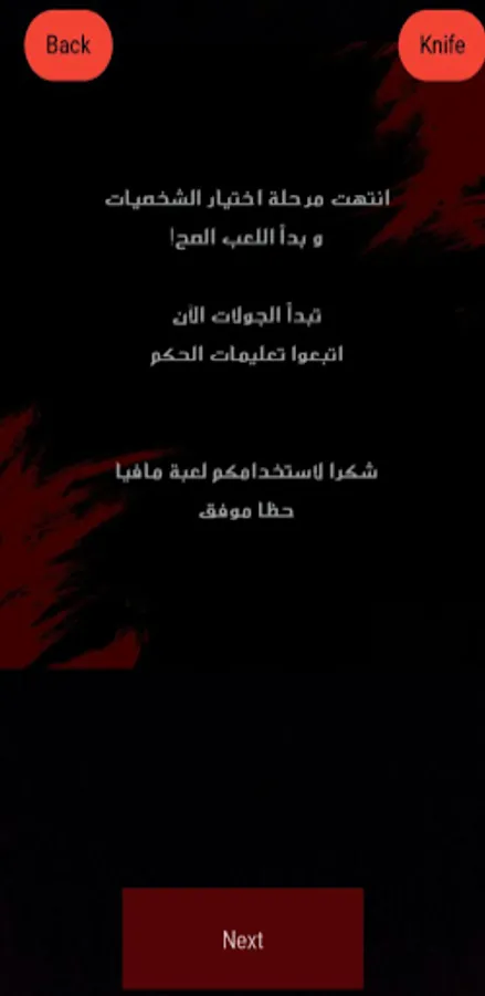 The referee: the organizer of the start of the rounds and monitoring the situation so that the eyes of the players are closed and opened based on the time and arrangement of the characters, so the eyes of the mafia are opened, then the doctors, then the old men to carry out their tasks.