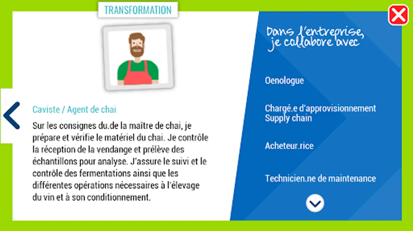 - A placement game to discover the sectors and the diversity of professions "from production to marketing"