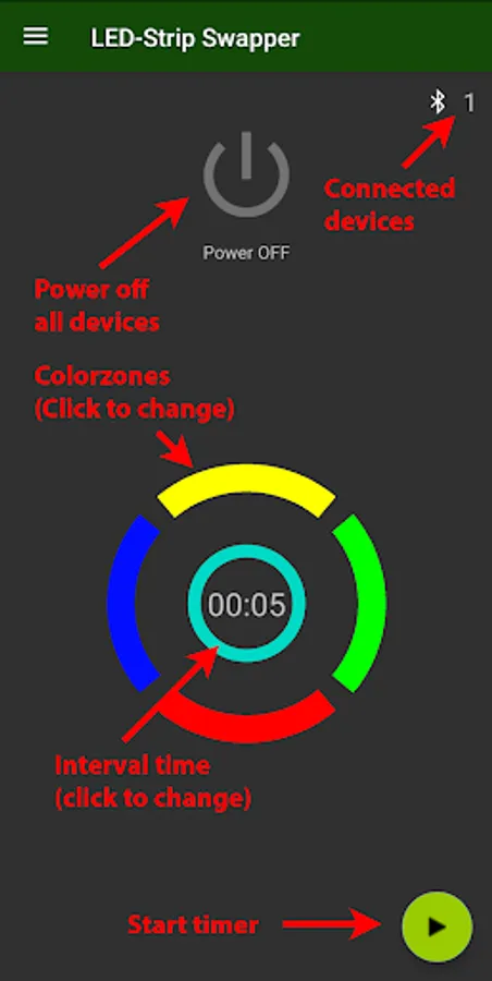 WIth this simple app you can connect up to six bluetooth-le LED-Strips to your device and run preconfigurable colorchanges in an interval from 3 seconds up to 30 minutes.