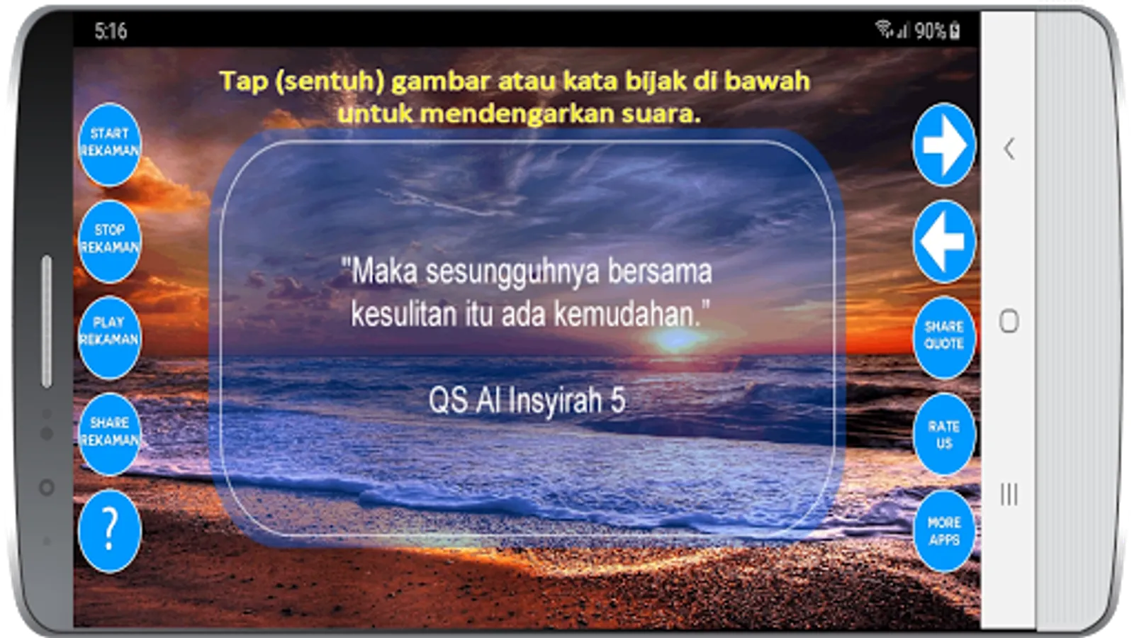 * Facilities to read a collection of words of wisdom / wisdom / motivation with navigation that is easy to use by anyone.
