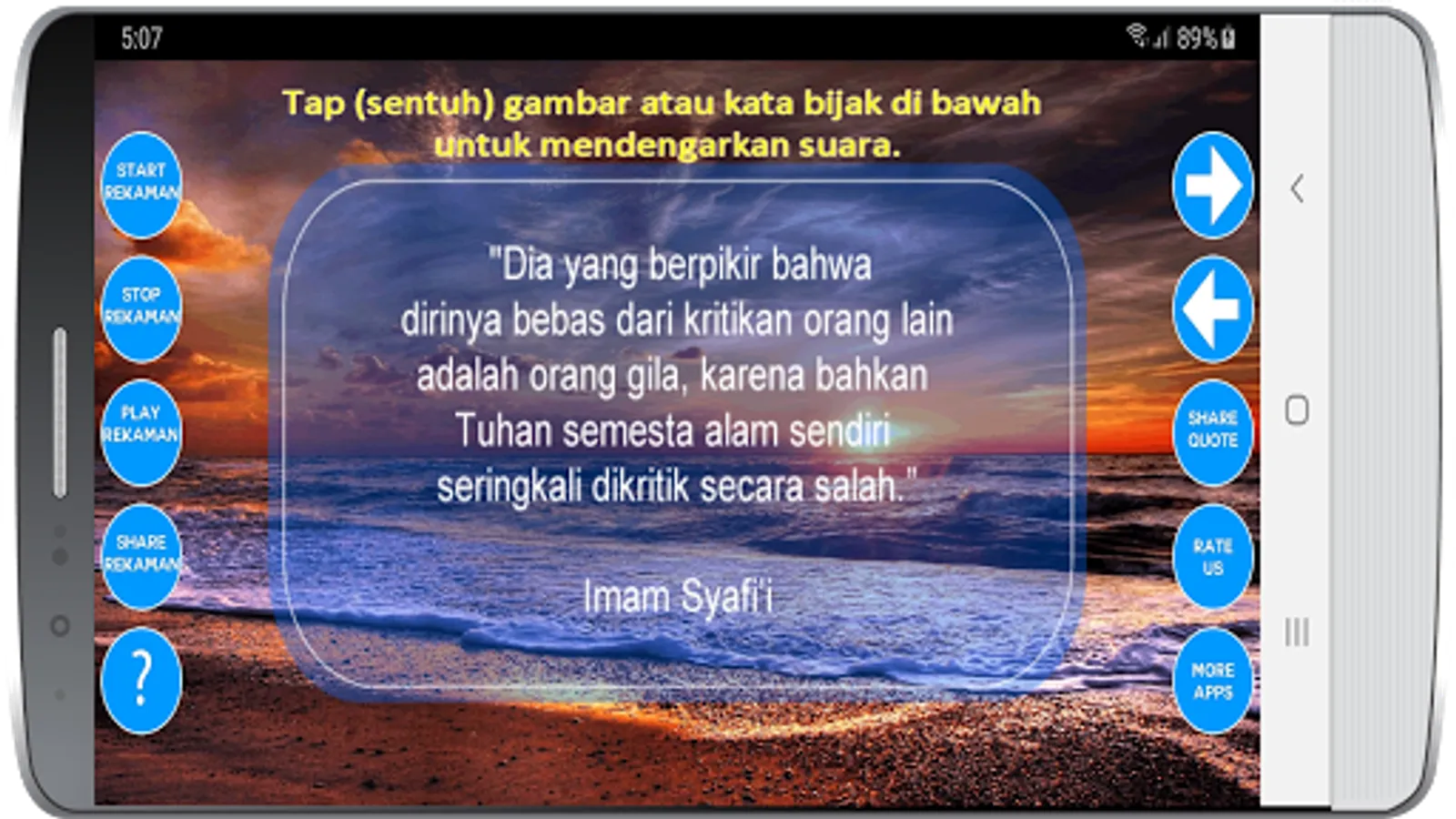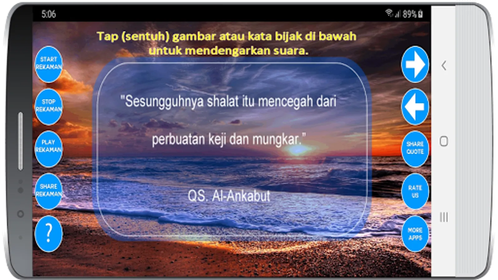The Islamic Pearls Word Collection 2 is the second application series that contains a collection of beautiful & wise aphorisms that have been spoken by figures in the Islamic world (such as: Ali bin Abi Talib, Jalaludin Rumi, Al Insyirah, At Taubah, Buya Hamka , Abdullah Gymnastiar, Abu Hamid Al Ghazali, Imam An Nawawi, Salim A. Fillah, Imam Asy Shafi'i, Al Baqarah, Ash-Shura, Umar bin Khattab and other figures)