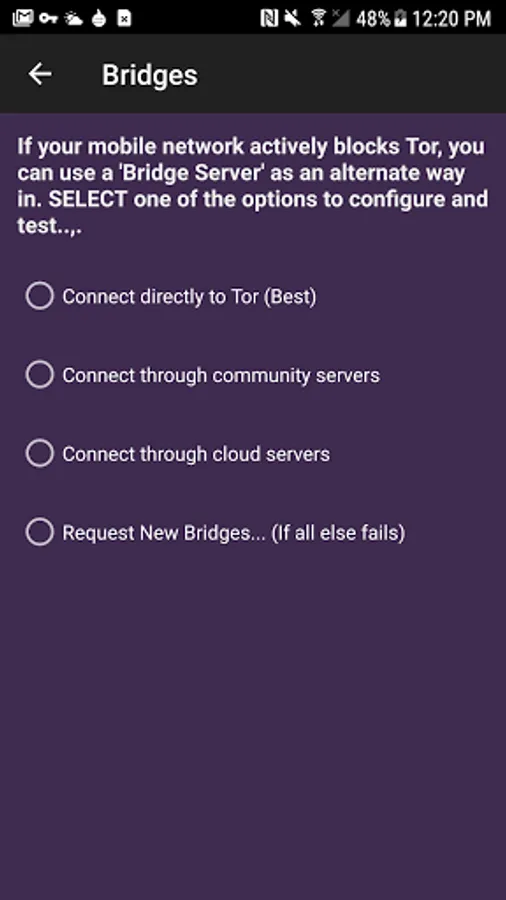 Encrypted traffic from any app, through the Tor network, gives you the highest standard of security and privacy.