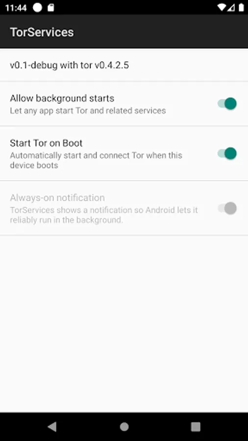 TorServices is a free proxy app that empowers other apps to use the internet more securely. It acts as a simple Tor "provider" for apps to hide their Internet traffic by encrypting it, then bouncing through a series of computers around the world. Tor is free software and an open network that helps you defend against a form of network surveillance that threatens personal freedom and privacy, confidential business activities and relationships, and state security known as traffic analysis.
