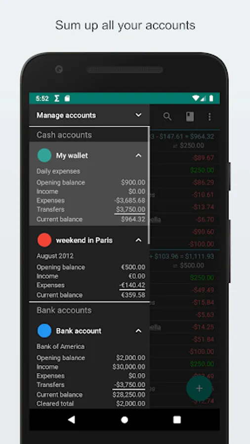 My Expenses keeps track of your expenses and your income, directly on your smartphone and on your tablet.