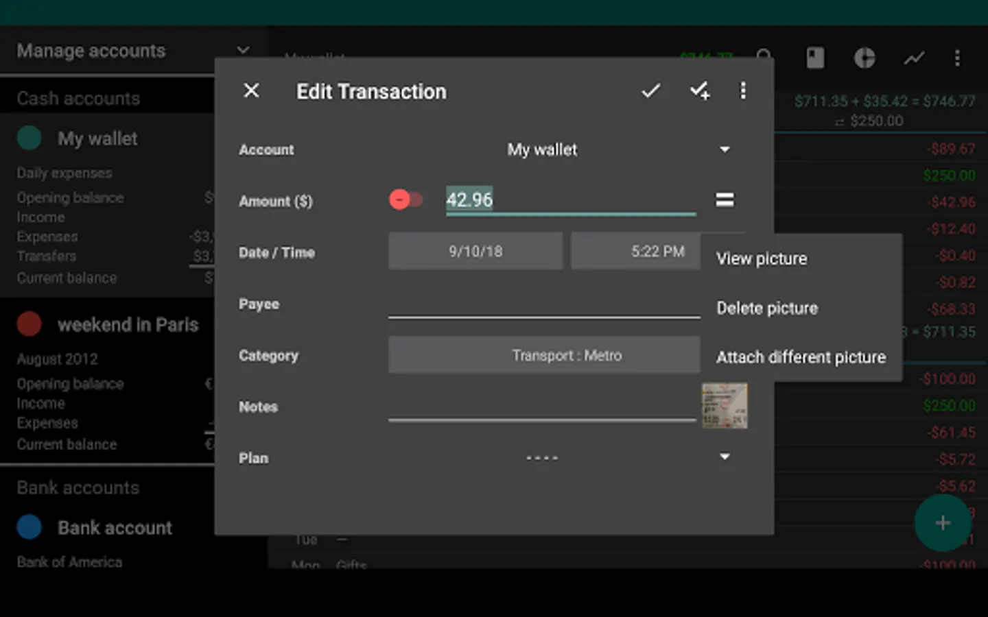 - Scan receipts: Automatically extract amount, date and payee