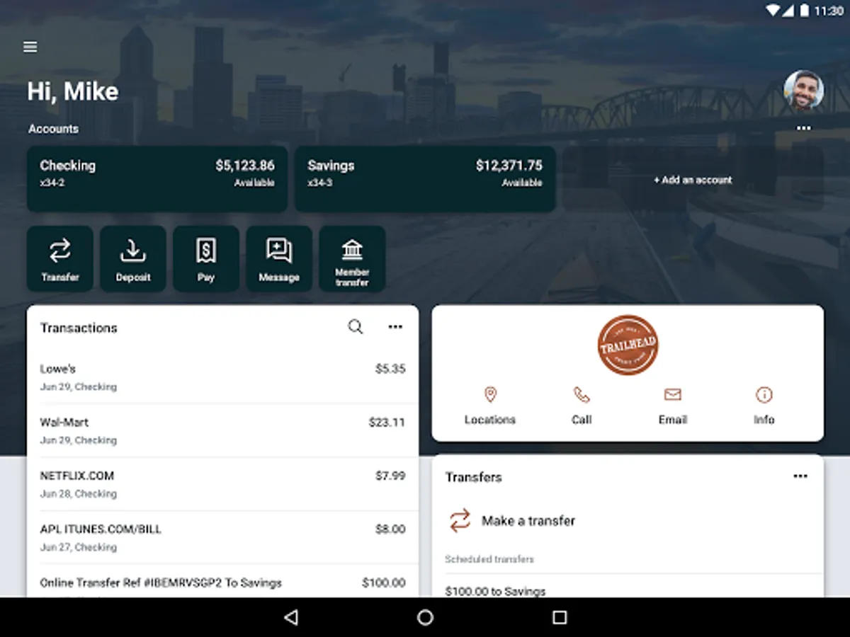 Trailhead Mobile Banking is your personal financial advocate. It’s fast, secure and makes life easier by empowering you with the tools you need to manage your finances.