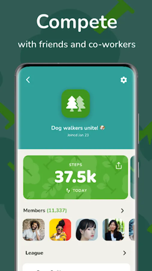 The app uses your phone's built-in pedometer to automatically register your daily step count. You can also connect to a fitness tracker or a compatible smartwatch to improve tracking accuracy.