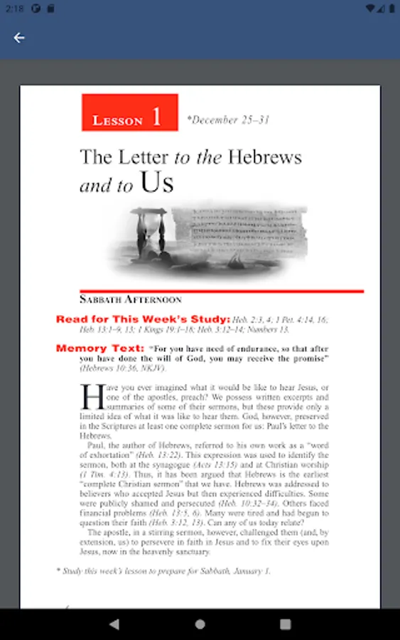 This mobile application allows you to view the Seventh Day Adventist Adult Lesson (Quarterly) on your mobile device.