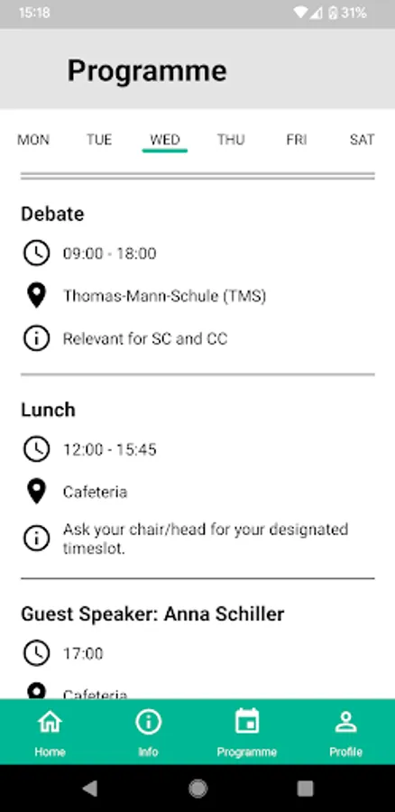 "Where is my committee? When does the debate start? How to get to the evening activities?"
