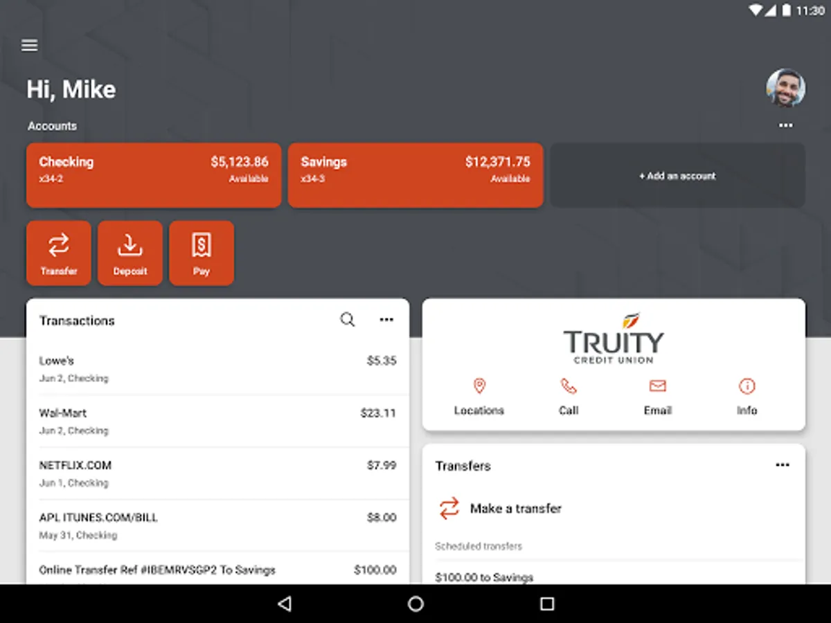 TruityCU is your personal financial advocate that gives you the ability to aggregate all of your financial accounts, including accounts from other banks and credit unions, into a single view. It’s fast, secure and makes life easier by empowering you with the tools you need to manage your finances.