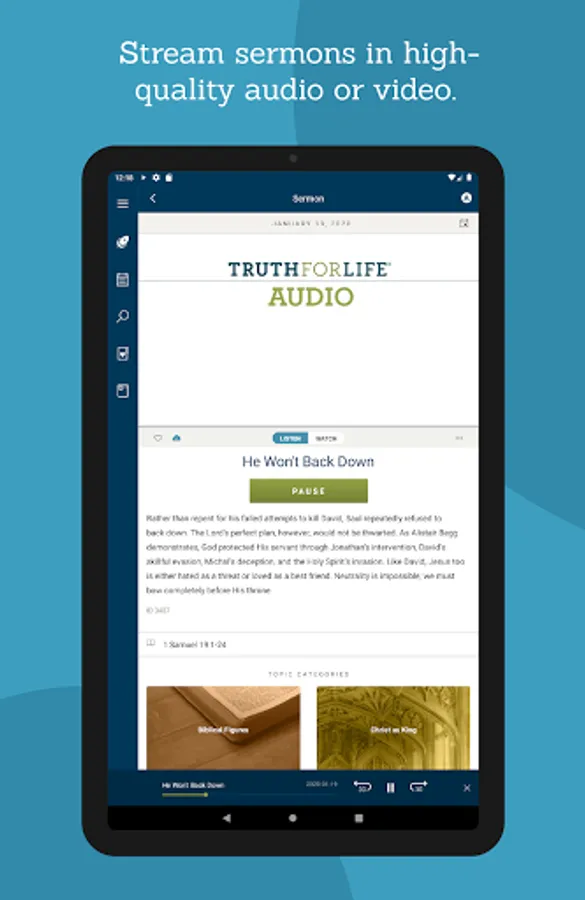 Truth For Life is the official app for Alistair Begg's Bible-teaching ministry. Study God's word each day verse by verse and be encouraged with daily scripture readings and the devotional "Morning & Evening".