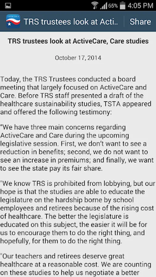 The TSTA mobile app provides access to valuable resources, wherever you are. You no longer need to be seated at your computer to join TSTA, get information about events from the TSTA calendar and find tips for your classroom. The TSTA app makes all that and much more available, on your phone. You can sign up for legislative updates and push notifications, find talking points about key issues, read the Grading Texas blog, and access discounts available to TSTA and NEA members. The TSTA app is also your portal to all the resources available from the nation’s largest education union, the National Education Association. TSTA is moving forward in our work for great schools where students, educators, school employees and the community work together to provide every child the opportunity to receive a quality education. With the TSTA app, we can move forward together.